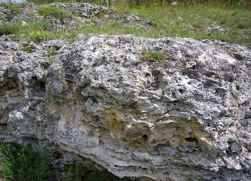 Massenkalkblöcke im Kalkmagerrasen bis hin zum Flachsberg