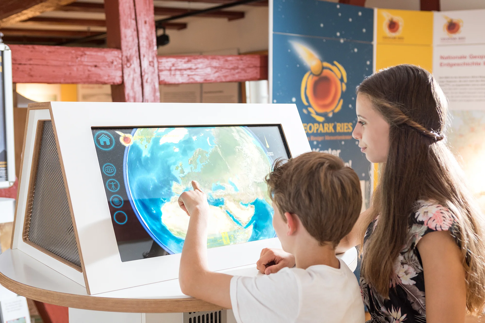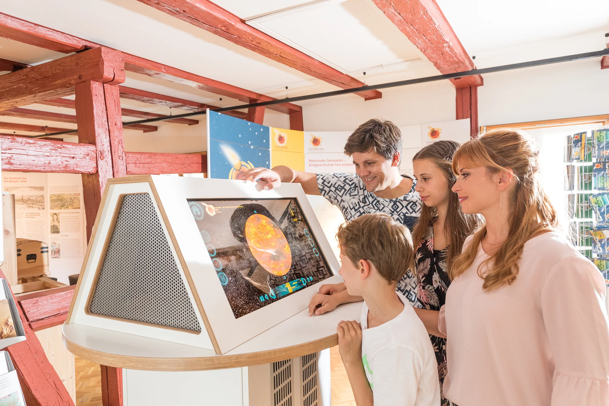 Neben einer Spielzone für Kinder ist das Nördlinger Geopark Infozentrum ist mit einem Infopoint für Besucher ausgestattet. Mittels Touchscreen können Gäste weitere Informationen über die Stadt Nördlingen, den UNESCO Global Geopark Ries und das Ferienland Donauries abrufen. Die "Uhr der Erdgeschichte" und eine Einschlagsanimation bringen die Geschehnisse des Einschlags hautnah.