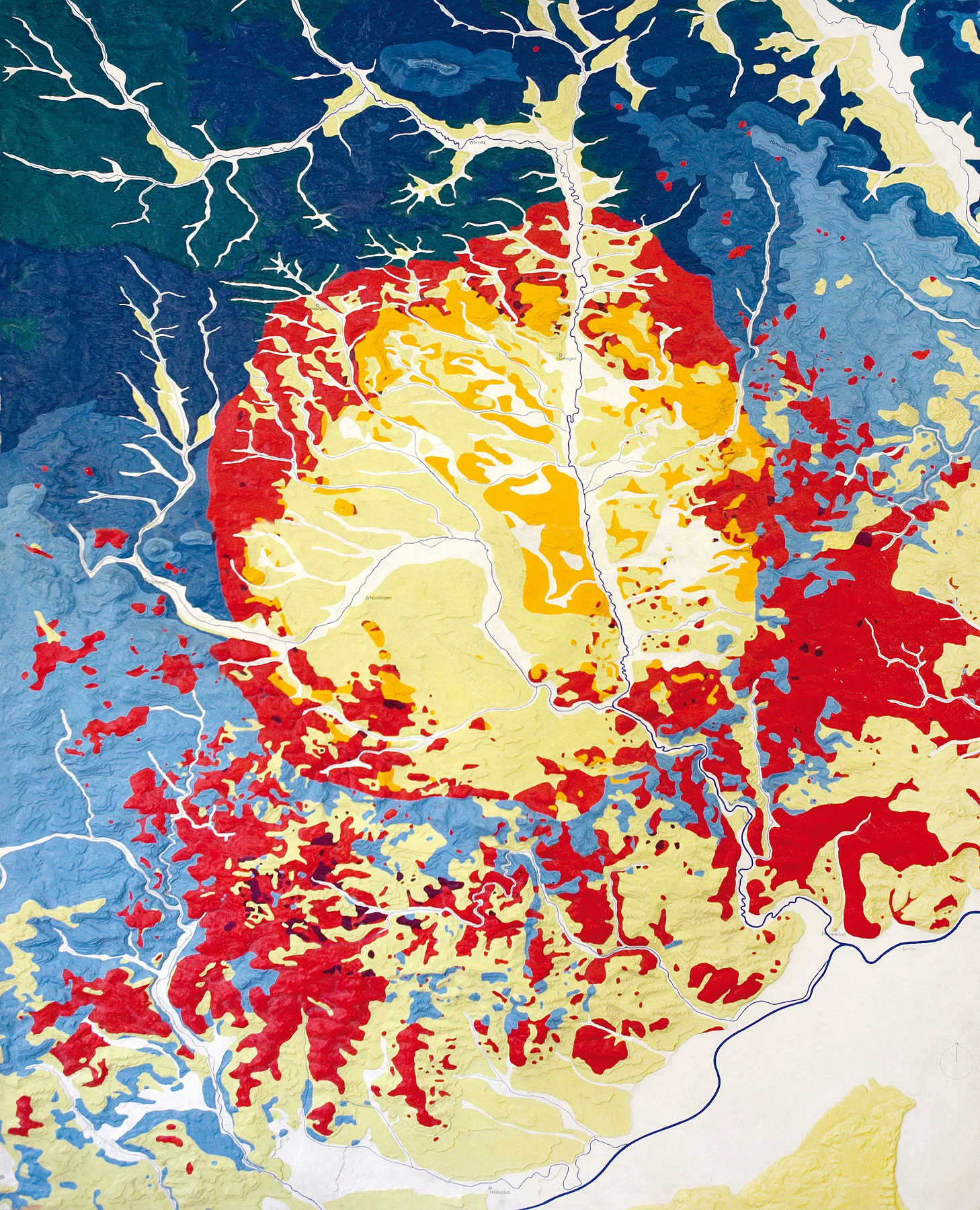 La catastrofe cosmica ha dato origine a una nuova roccia: la suevite (dal latino “suevia”, Svevia). La suevite è una roccia detritica (breccia) composta prevalentemente da frammenti di graniti e gneiss (basamento) e da brandelli di basamento fuso, che si è formata quando la nube incandescente è collassata sul cratere.