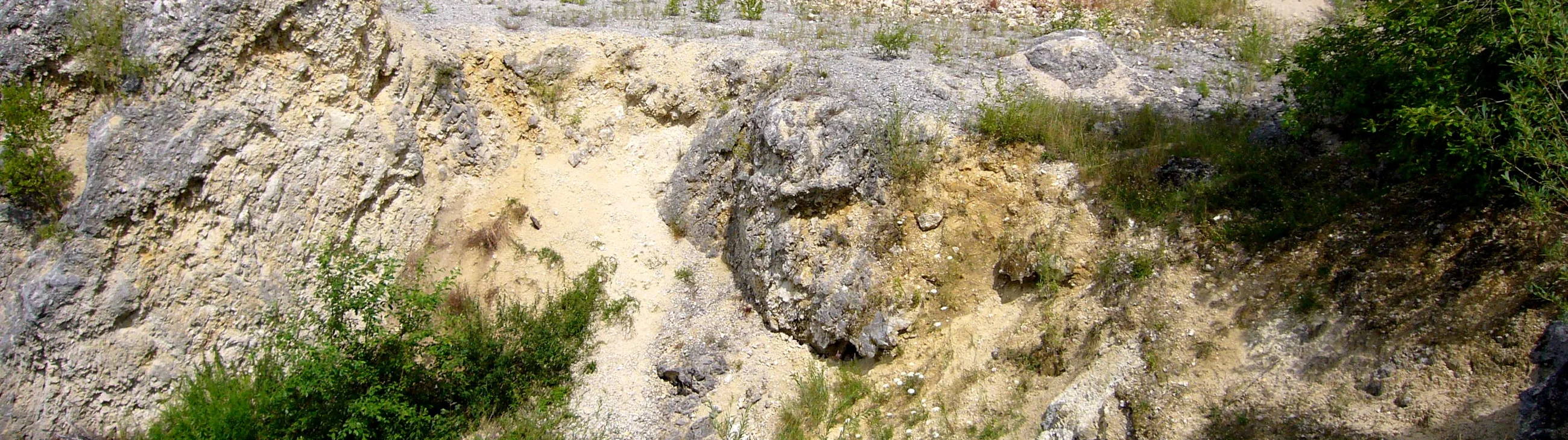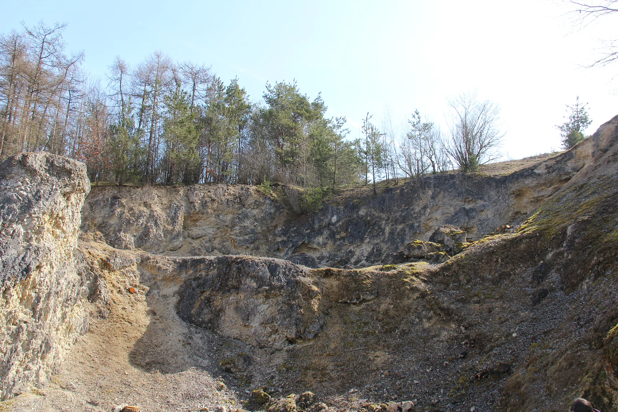 Der ehemalige Steinbruch liegt etwa 3 km südlich des Kraterrandes. Aufgeschlossen sind allochthone Malm-Kalke des Kimmeridge. Durch die starke Beanspruchung liegen sie in stark brecciierter und vergriester Form als monomikte Breccie vor. Stellenweise wirkt das Gestein richtiggehend "verknetet". An den Kalken ist eine intensive Mörtel-Textur erkennbar.