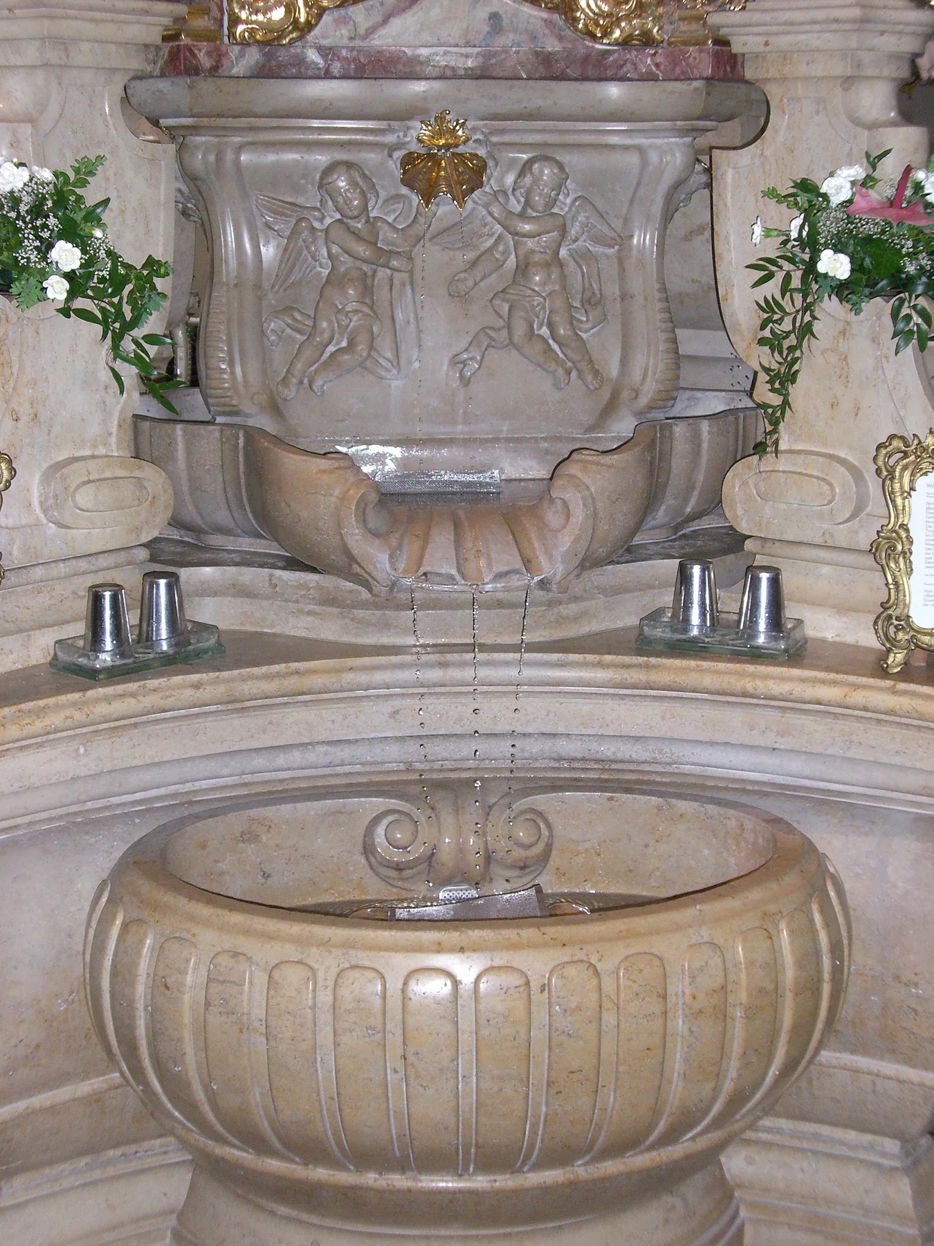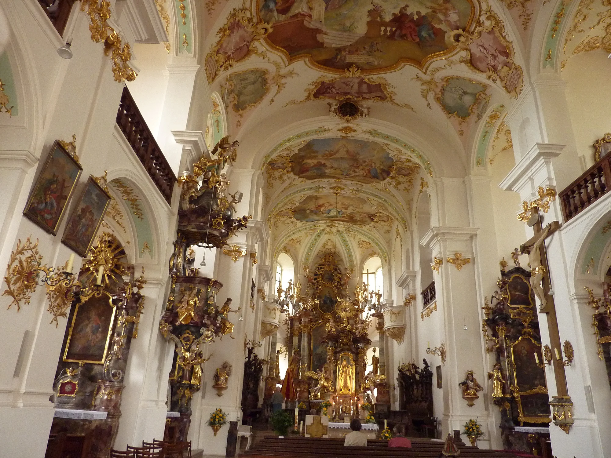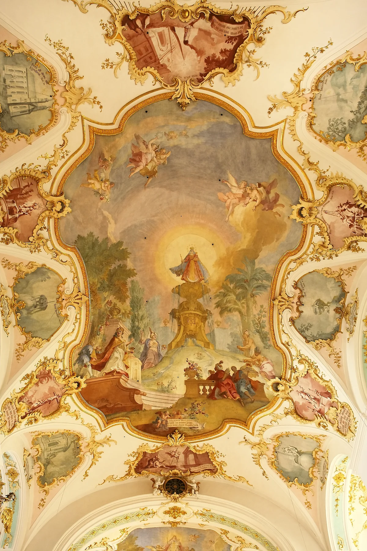 L’edificio venne poi decorato con eleganti stucchi (1752-1754) ed affreschi sotto la direzione di Johann Baptist Zimmermann. Il nucleo centrale della chiesa è l’Altare delle grazie con l’immagine miracolosa della Madonna, l’unico altare al mondo da cui sgorga una sorgente d’acqua, realizzato da Johann Joseph Mayr nel 1755. Il piano dell’altare (mensa) con la fontana fu realizzato nel 1953 dallo scultore locale Ernst Steinacker.