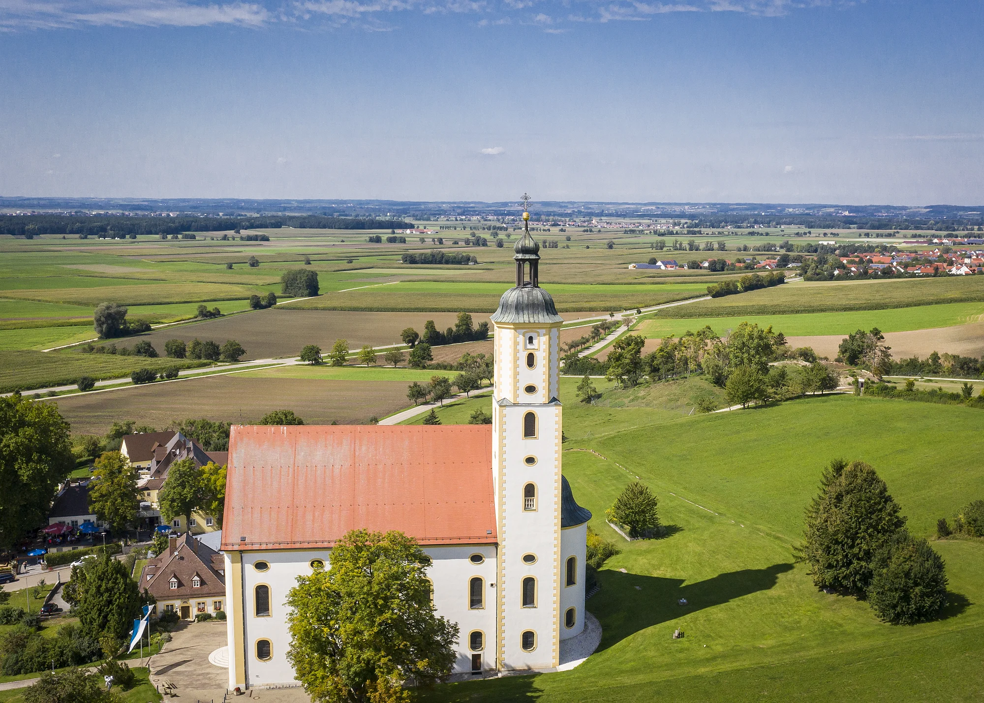 Nel 1684 un abitante di Wemding portò con sé da Roma l’immagine miracolosa di Nostra Signora, oggi situata sull’Altare delle grazie. L’afflusso di un numero sempre maggiore di pellegrini fece sì che la cappella inizialmente costruita sopra la sorgente “Schillerbrünnl” (1692) venisse sostituita dall’attuale chiesa in stile Rococò, edificata tra il 1748 ed il 1782 su progetto di Franz Joseph Roth, architetto dell’Ordine dei Cavalieri Teutonici.
