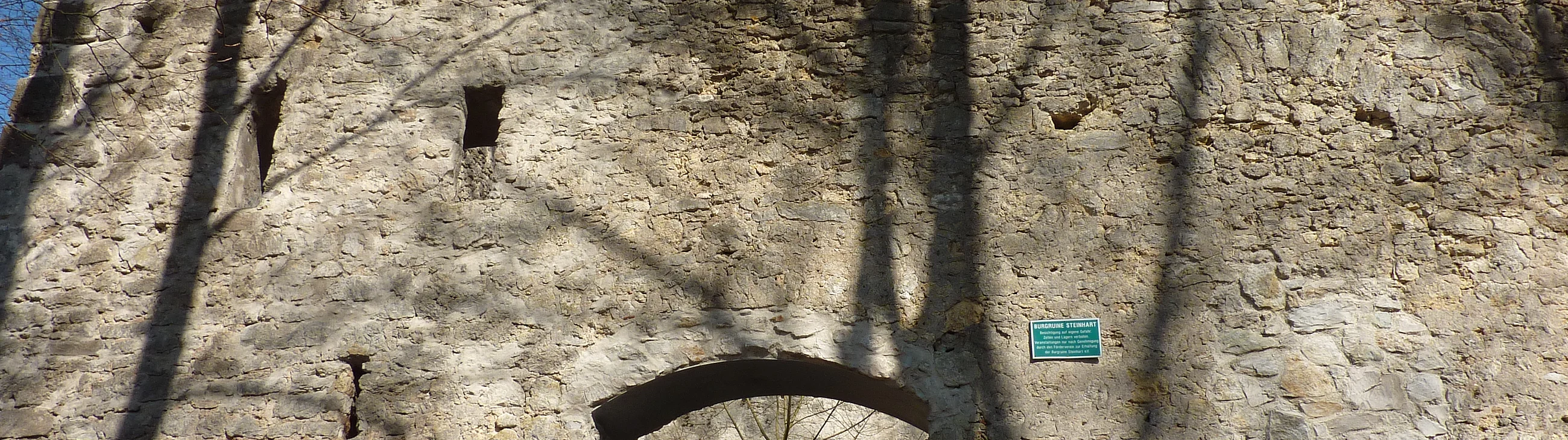 Im 12. Jh. erbauten „die Spät(h)en" oder „Spet" von Steinhart eine Burg. Im 13. Jh. verlegten sie ihren Sitz nach Faimingen an der Donau. Die Erwerber der Burg, die Grafen von Oettingen, gaben sie als Lehen an verschiedene Ritterfamilien. Im 14. Jh. dürfte die Burg aufgegeben worden sein. Burghügel und Graben sind noch erkennbar. Eine neue Befestigung mit einem ausgedehnten Grabensystem entstand oberhalb der alten Anlage. 1634 wurden Dorf und Burg niedergebrannt. Steinhart besaß eine jüdische Gemeinde mit einer eigenen Synagoge. Der ehemalige Friedhof befindet sich auf dem einstigen Burghügel.