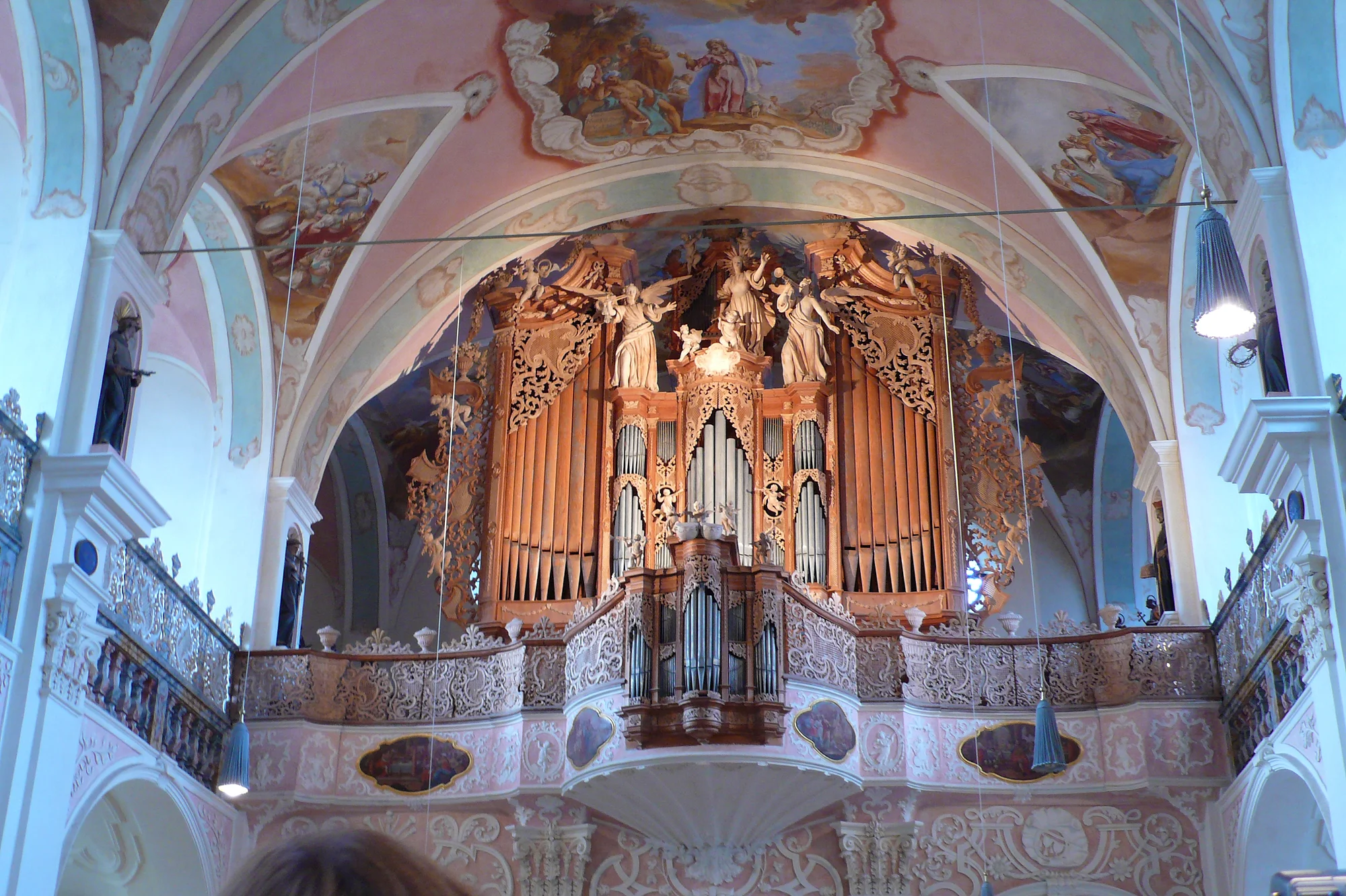 Die Klosteranlage Maihingen wurde 1437 vom Haus Oettingen gestiftet und bildet bis heute ein eindrucksvolles Ensemble aus Geschichte, Kunst und Kultur. Von außen zeigt sich die Klosterkirche Maria Immaculata in schlichter Eleganz – doch wer das Innere betritt, erlebt eine wahre Überraschung: Ein heller, weitläufiger Kirchenraum entfaltet sich mit prachtvoller barocker Ausstattung. Besonders sehenswert sind die kunstvollen Altäre, die meisterhafte Stuck- und Freskenarbeit des Künstlers Martin Speer (1752), das reich verzierte Chorgestühl sowie die berühmte Barockorgel, die zu den klanglich wie handwerklich herausragenden Instrumenten ihrer Zeit zählt. Ein Besuch der Klosterkirche Maihingen verbindet kunsthistorische Entdeckungen mit einem besonderen Raumerlebnis – ein Ort, der bis heute Spiritualität, Musik und Kultur eindrucksvoll vereint.