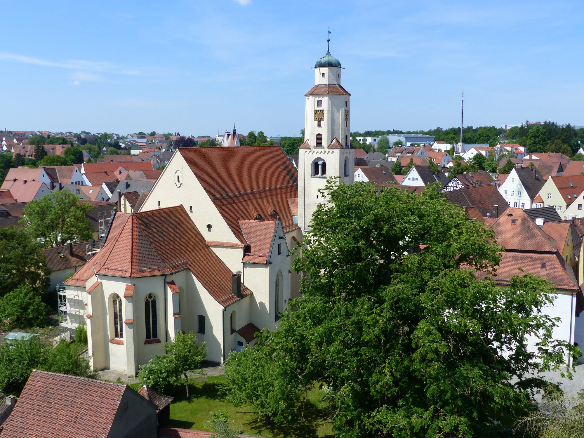 Das ehemalige Benediktinerinnenkloster wurde um 870 gegründet. In dieser Zeit wurde auch eine erste kleine Kirche erbaut. 893 wurden Teile der Gebeine der heiligen Walburga an das Kloster übereignet und Monheim wurde zu einem vielbesuchten Wallfahrtsort. Daher wurde der Neubau einer größeren Kirche notwendig, welche 1061 der Hl. Walburga geweiht wurde. Der heutige Kirchenbau stammt aus der Zeit um 1500 unter Verwendung des ehem. Turmunterbaus. 1530 wurde das Kloster aufgehoben und die Kirche als Stadtpfarrkirche verwendet. Vom Kloster ist heute nur noch der westliche Kreuzgangflügel erhalten. Der Baustil der Kirche trägt spätgotische Spuren, die Innenausstattung ist jedoch barocken Stils.