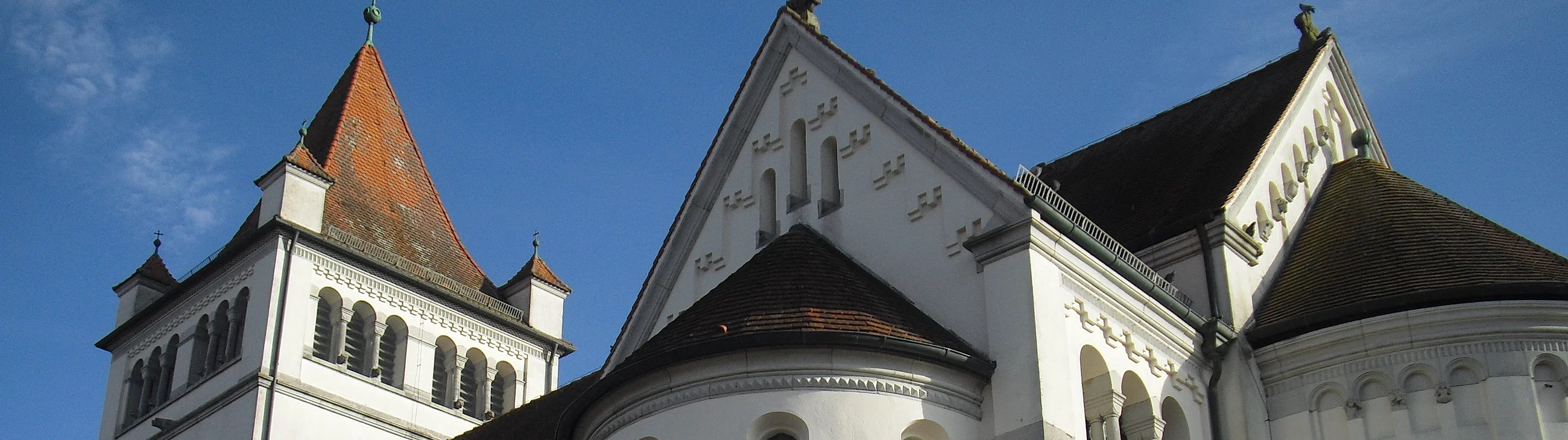 Die Kirche ist eine der bedeutendsten neuromanischen Sakralbauten im süddeutschen Raum. Der markante Ostturm ist Rest einer Chorturmanlage aus dem 14. Jahrhundert und wurde beim Neubau der Kirche von 1903 – 1907 nach Plänen von Leonhard Romeis erhöht. Die dreischiffige Säulenbasilika ist nach Westen ausgerichtet und mit einer Holzdecke sowie der Chor mit halbrunder Apsis ausgestattet.