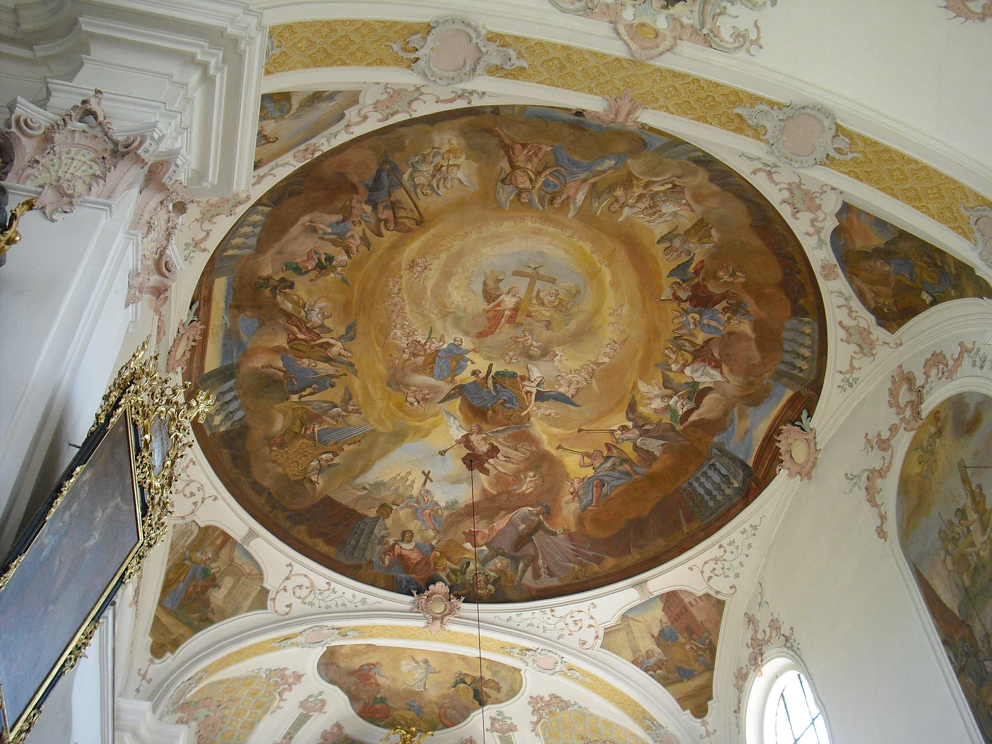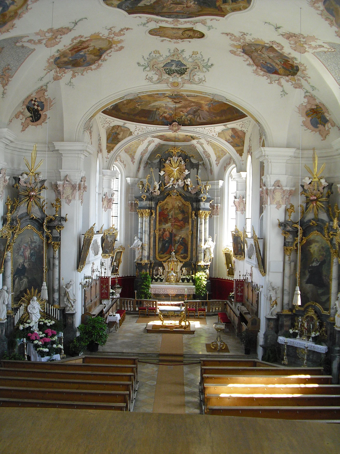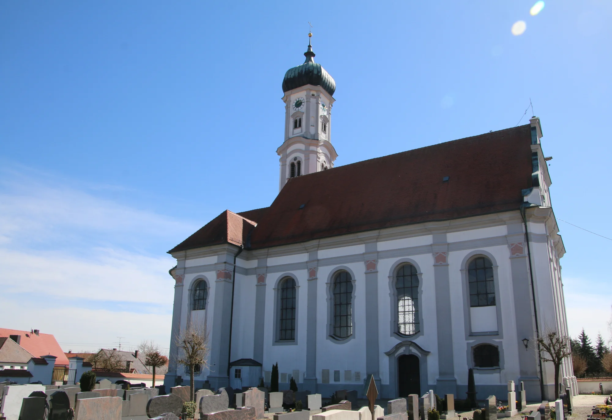 Erbauung 1747 – 1749 im Auftrag des Kaisheimer Abts Coelestin I. Meermoos durch Johann Georg Hitzelberger aus Ziementshausen. Prächtige barocke Innenausstattung durch feine Stukkaturen, mächtige Altäre der Gebrüder Verhelst sowie Fresken von Anton Enderle.