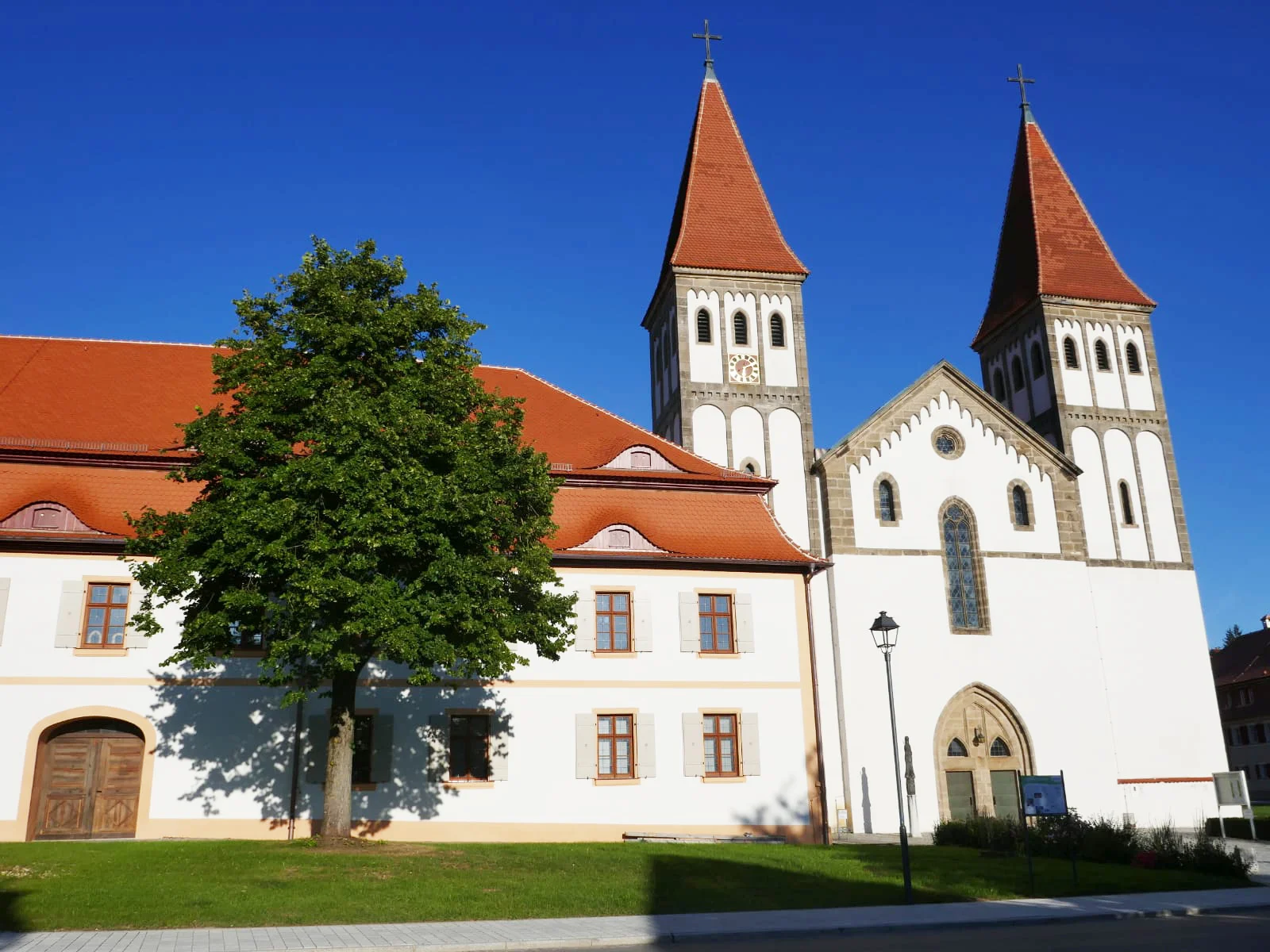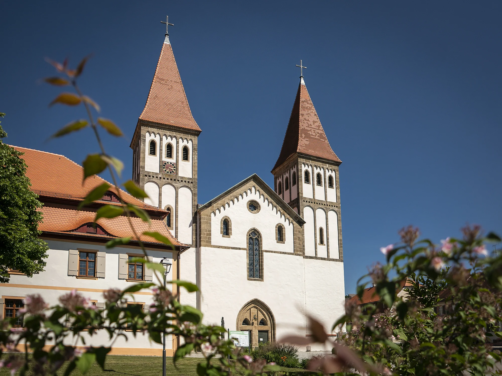 Ehemalige Klosterkirche: romanische, dreischiffige Pfeilerbasilika mit Querschiff, Vorhalle und zwei Westtürmen (1160 -1180). An Stelle des romanischen Staffelschores mit fünf Apsiden ein gotischer Chor aus dem 14./15. Jh. Bedeutende Grabmäler: in der Vierung Tumba des Hl. Wunibald, im Westteil Grabkapelle mit Tumba der Hl. Walburga, im nördlichen Seitenschiff Grabmäler von Äbten, Klostervögten und Adeligen.