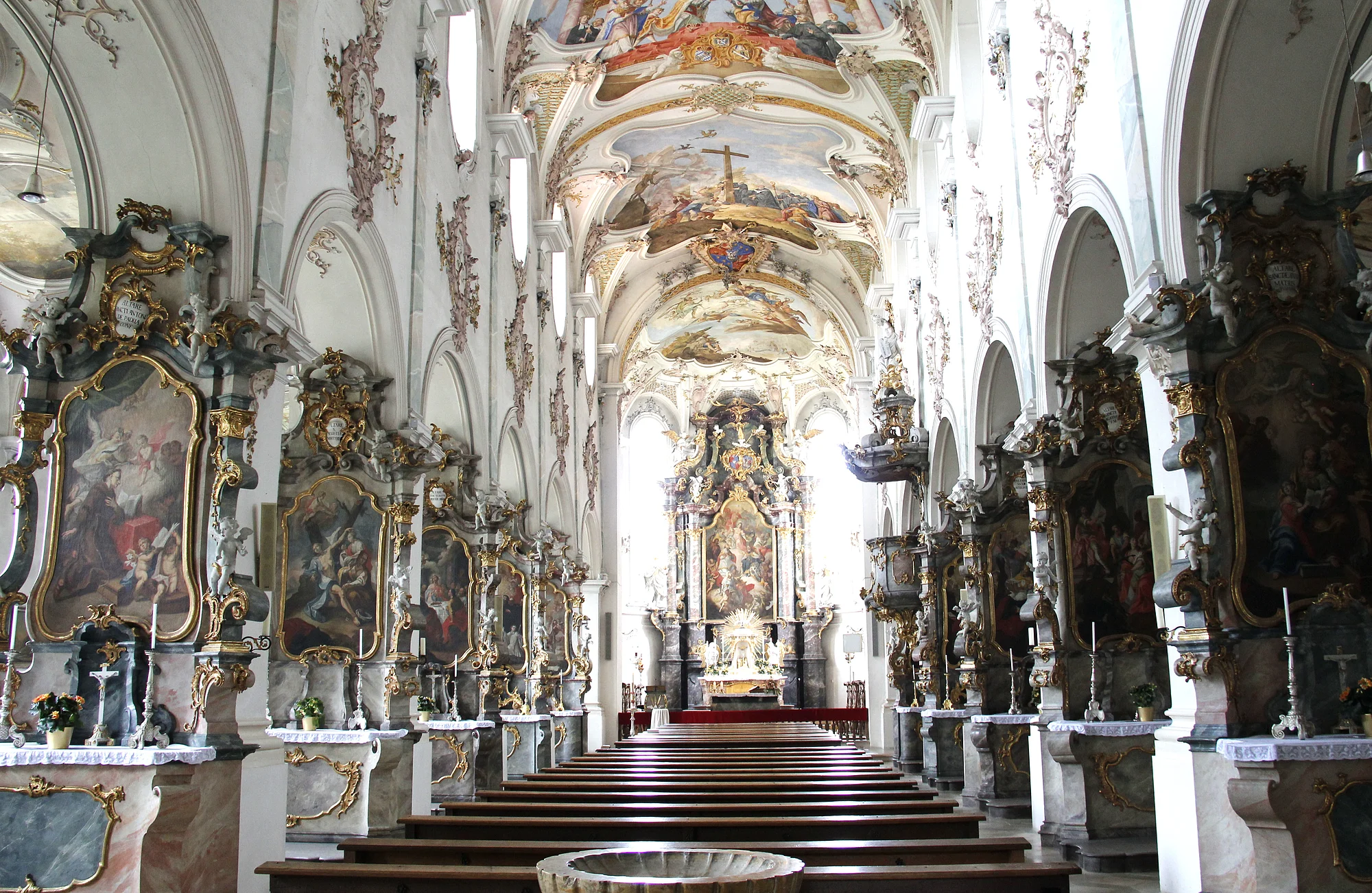 Der heutige Kirchenbau stammt im Wesentlichen aus dem 18. Jahrhundert. Aufgrund der prächtigen Innenausstattung im Rokokostil unter Leitung des Dillinger Bildhauers Johann