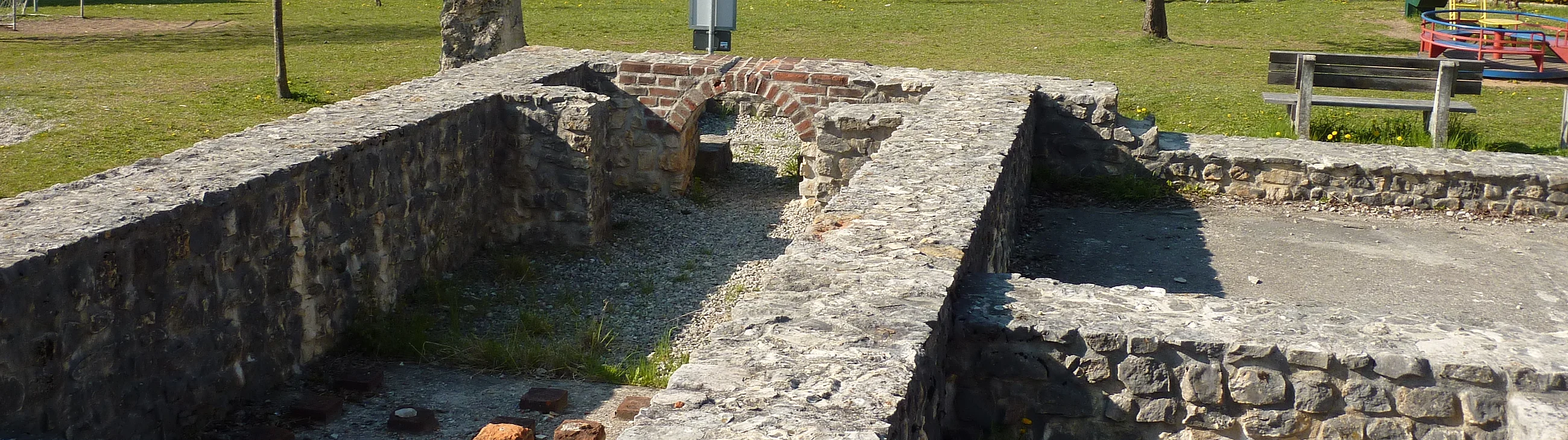 1988 und 1989 wurden am östlichen Ortsrand Reste eines römischen Bauernhofes (villa rustica) aufgedeckt. Das Hauptgebäude besitzt einen quadratischen Grundriss, die 28,5 m breite Front mit einer Säulenhalle war nach Norden ausgerichtet. Die konservierten Mauerzüge des Bades mit verschiedenen Räumen und einem Wasserbassin sind in einer Grünanlage zugänglich. Das bäuerliche Gehöft wurde planmäßig aufgegeben und verlassen. Es fanden sich bei der Untersuchung keine Spuren einer Zerstörung.