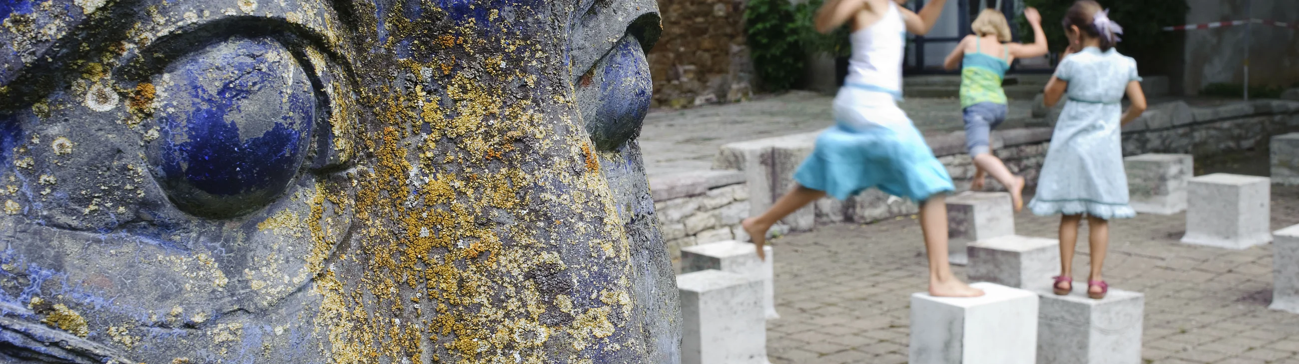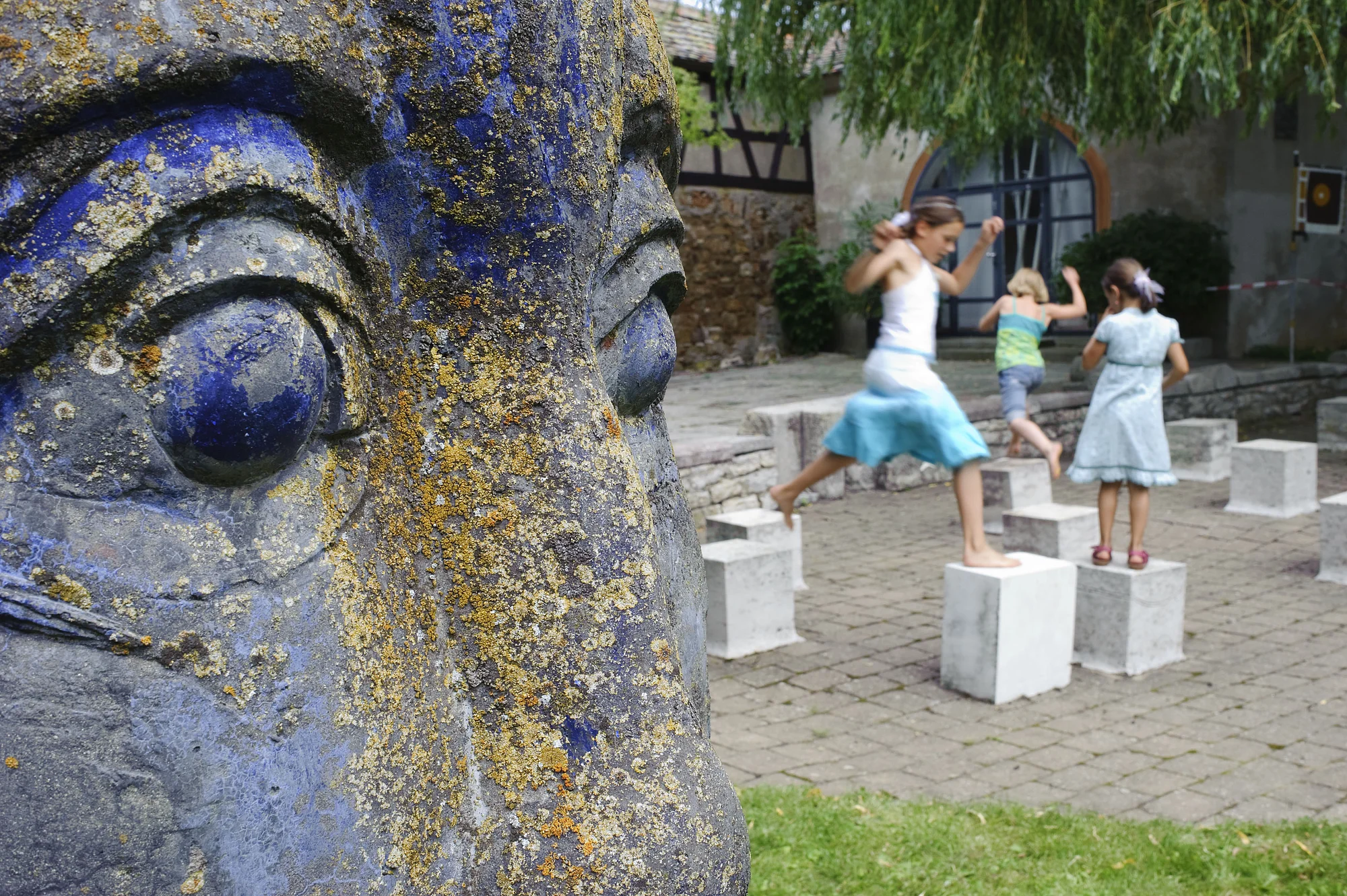1983 anvertraute Fürst Albrecht von Oettingen - Spielberg die Anlage der Künstlerfamilie Steinacker, die in jahrelanger Sanierungsarbeit die Schlossanlage wiederhergestellt hat. Der Bildhauer und Maler Ernst Steinacker (1919 - 2008) hat mit grossen Engagement und Formwillen jeden Raum des Burgschlosses gestaltet und zu einem Gesamtkunstwerk geformt. Seine bemerkenswerten Skulpturen und Gemälde, die um die Beseelung und Einswerdung des Menschenbildes kreisen, prägen seither die Schlossanlage. Zudem zeigt die Schlossgalerie Kunstwerke von Ernst Steinackers Frau Ingrid und von seinen Kindern Veit und Annette. Im Jahr 2015 erfolgte eine Sanierung im nordwestlichen Teil des kreisförmig angelegten Gebäudekomplexes, bei der der moderne Freskenraum, der barocke Glockenturm und der Bühnenbereich wiederhergestellt wurden.