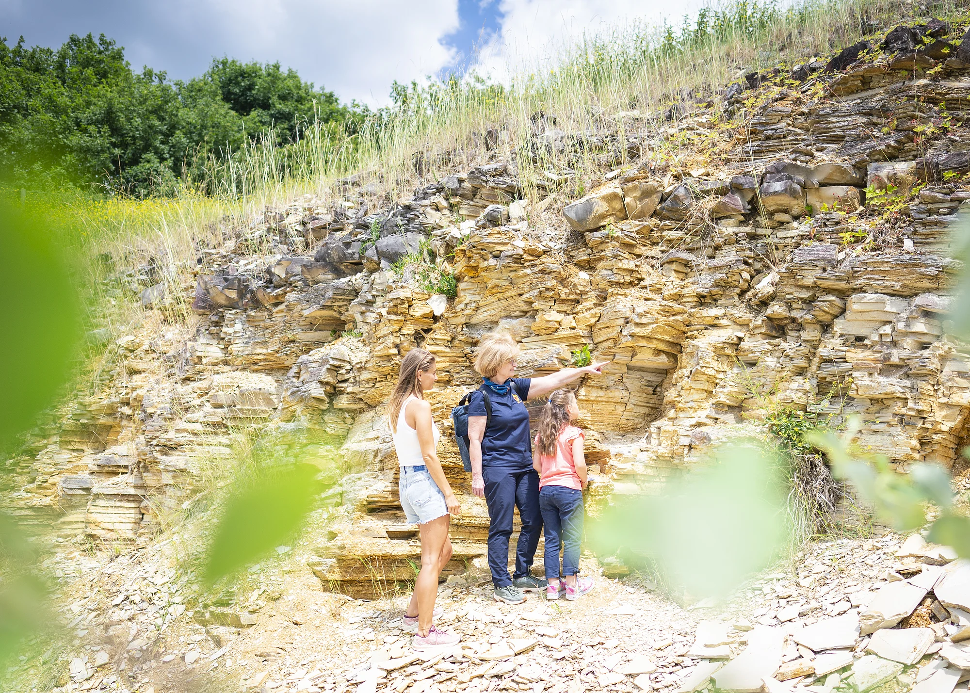 Schätze aus dem Boden lernen die Teilnehmerinnen und Teilnehmer auf dem Lehrpfad der Geotope Daiting kennen. Hier wurden einst Plattenkalke aus dem Oberjura für Schieferdächer und Bohnerze zur Eisenerzgewinnung abgebaut. Wahre Schätze sind bestens erhaltene Fossilfunde aus dem Jurameer, das hier vor rund 150 Millionen Jahren das Land bedeckte.