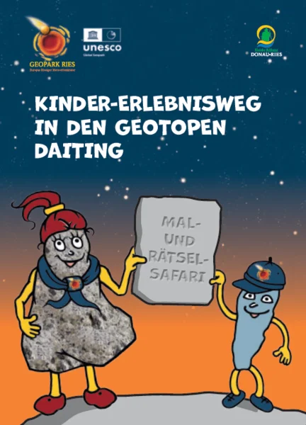 Auf dem Kinder-Erlebnispfad der Geotope Daiting erfahren junge Besucher auf unterhaltsame und leicht verständliche Weise von den beiden Geopark-Maskottchen "Suevitchen" und "Riesitchen", wie die Landschaft des UNESCO Global Geoparks Ries entstanden ist und welche Schätze aus ihr hervorgehen. Auch zu spannenden Themen wie Kelten und Rittern, Fossilien und Eisen, Schafen und Bäumen ist allerhand Erstaunliches zu erfahren.