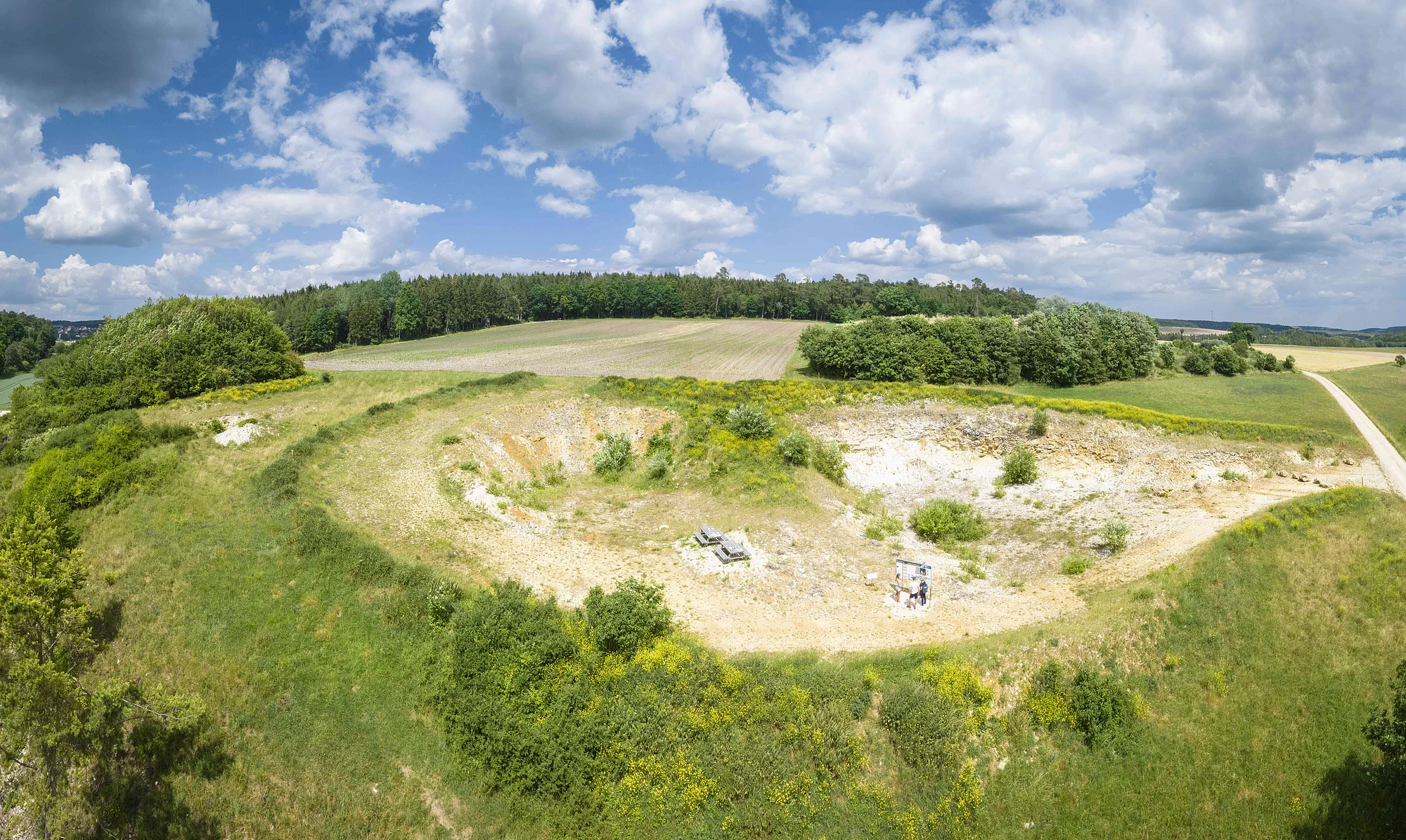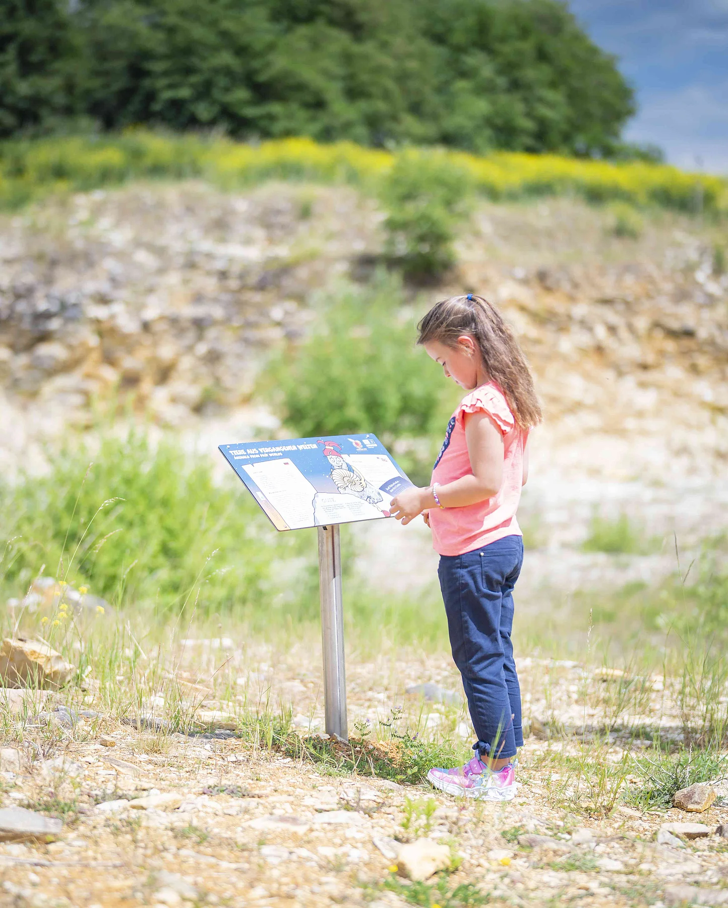 Auf dem Kinder-Erlebnispfad der Geotope Daiting erfahren junge Besucher auf unterhaltsame und leicht verständliche Weise von den beiden Geopark-Maskottchen "Suevitchen" und "Riesitchen", wie die Landschaft des UNESCO Global Geoparks Ries entstanden ist und welche Schätze aus ihr hervorgehen. Auch zu spannenden Themen wie Kelten und Rittern, Fossilien und Eisen, Schafen und Bäumen ist allerhand Erstaunliches zu erfahren.